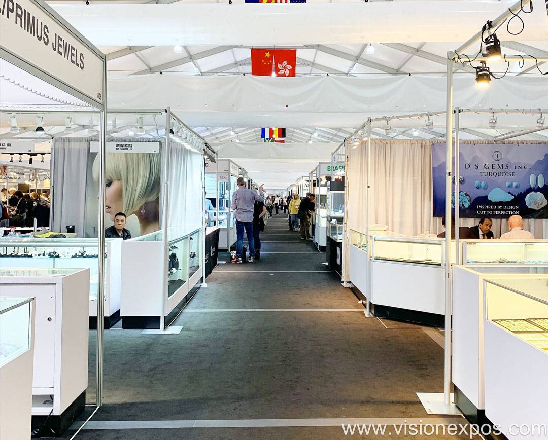 美国珠宝首饰展会整体规模宏大,展览总面积达 12 万平方英尺,场馆为全封闭钢结构建筑,整体铺设地毯并配备中央空调系统,为展商与买家提供舒适专业的交易环境。美国宝石加工设备展会拥有近 700 个标准展位,汇聚来自全球 40 余个国家和地区的 650 余家参展企业,涵盖宝石原料供应商、珠宝制造商、首饰设计师、设备工具厂商、包装服务商等全产业链企业。作为图森同期举办的 40 余个独立珠宝展中的核心展会,GJX Show 与城市内其他展会形成联动效应,全城参展商超 3000 家,专业观众资源高度集中。