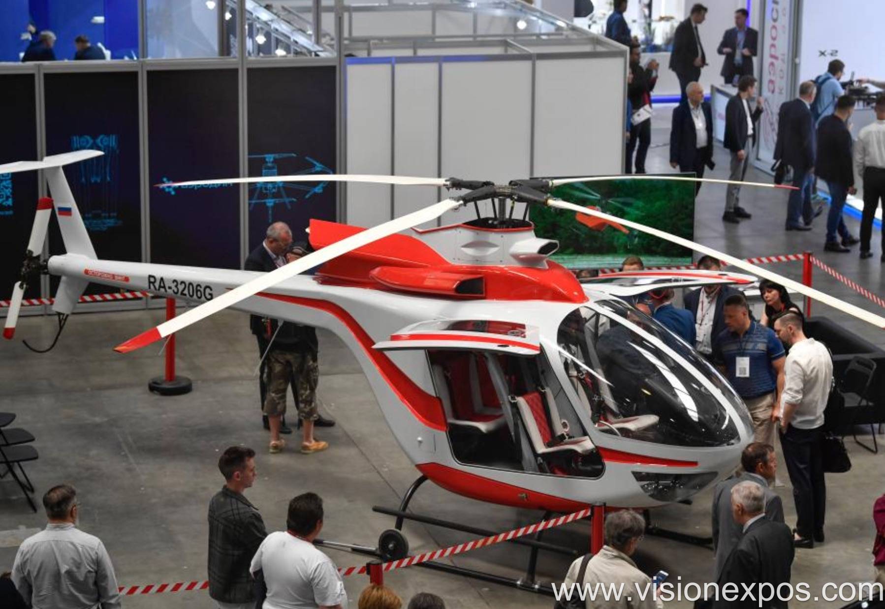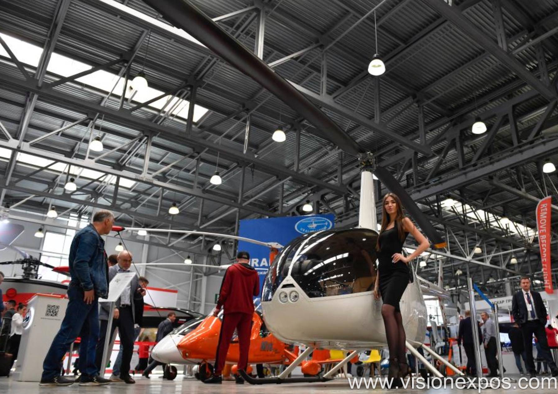 展品覆盖民用、军用全谱系直升机整机,含轻型多用途直升机(如 VRT500、Kasatka 505)、中型运输直升机(Mi-8/17 系列)、重型运输直升机(Mi-26)及军用武装直升机(Mi-28、Ka-52)等。核心系统方面,展出涡轴发动机(如 VK-650V)、传动系统、旋翼系统、燃油系统等关键部件,兼顾传统燃油动力与新型混合动力、电动动力系统原型,适配不同载重与续航需求。